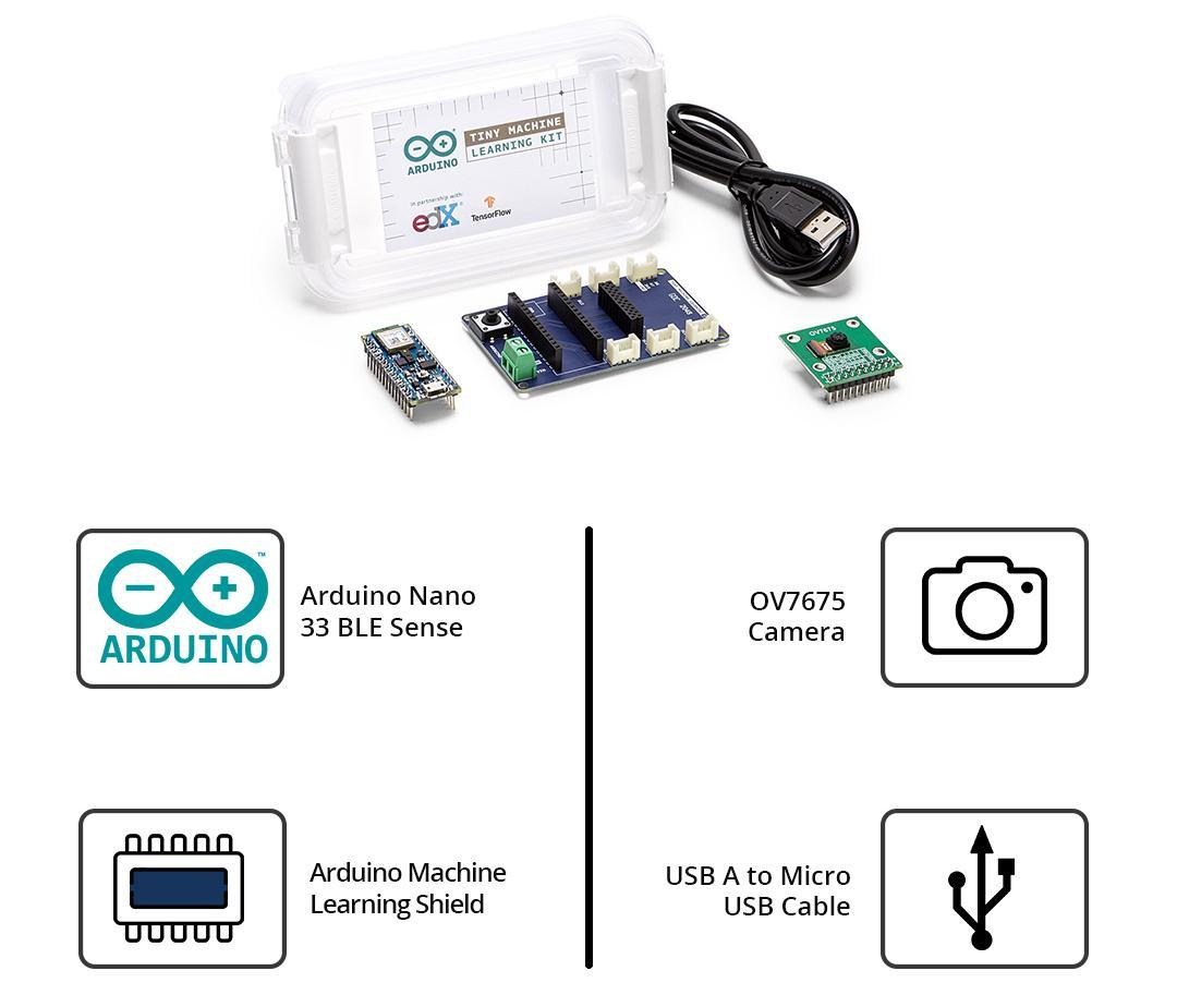 The Arduino Tiny Machine Learning Kit includes: